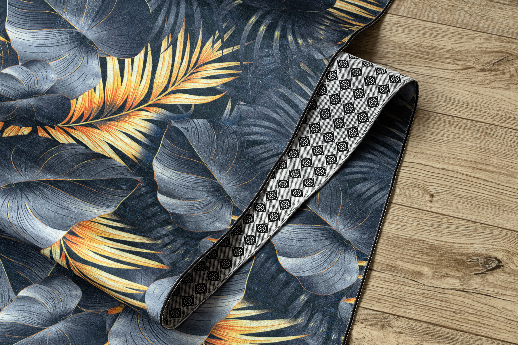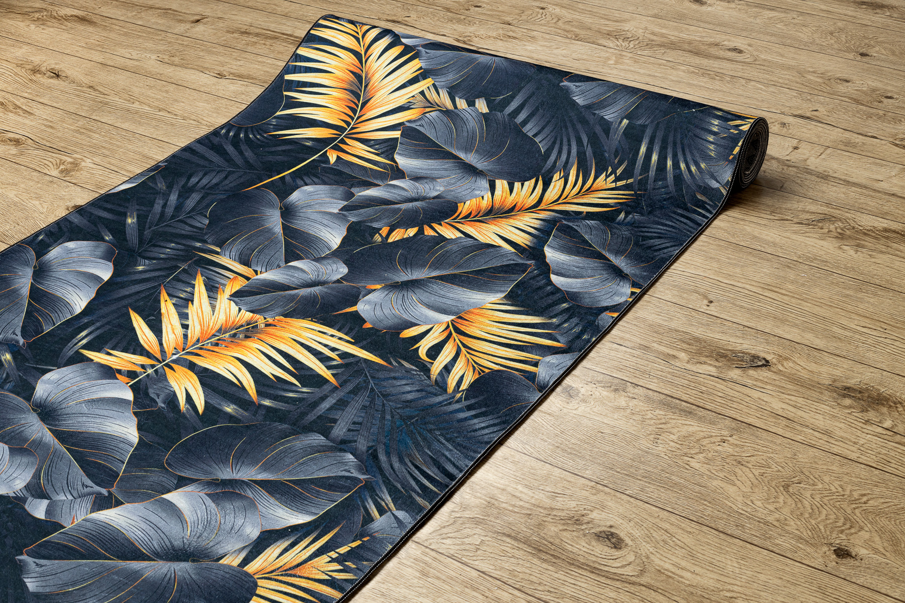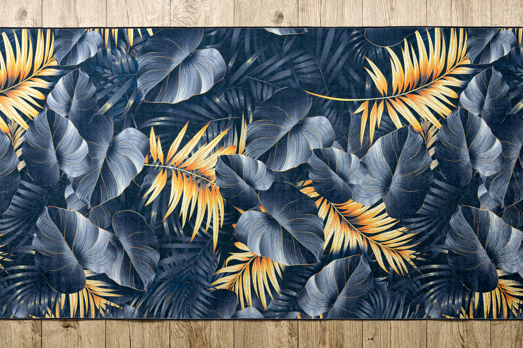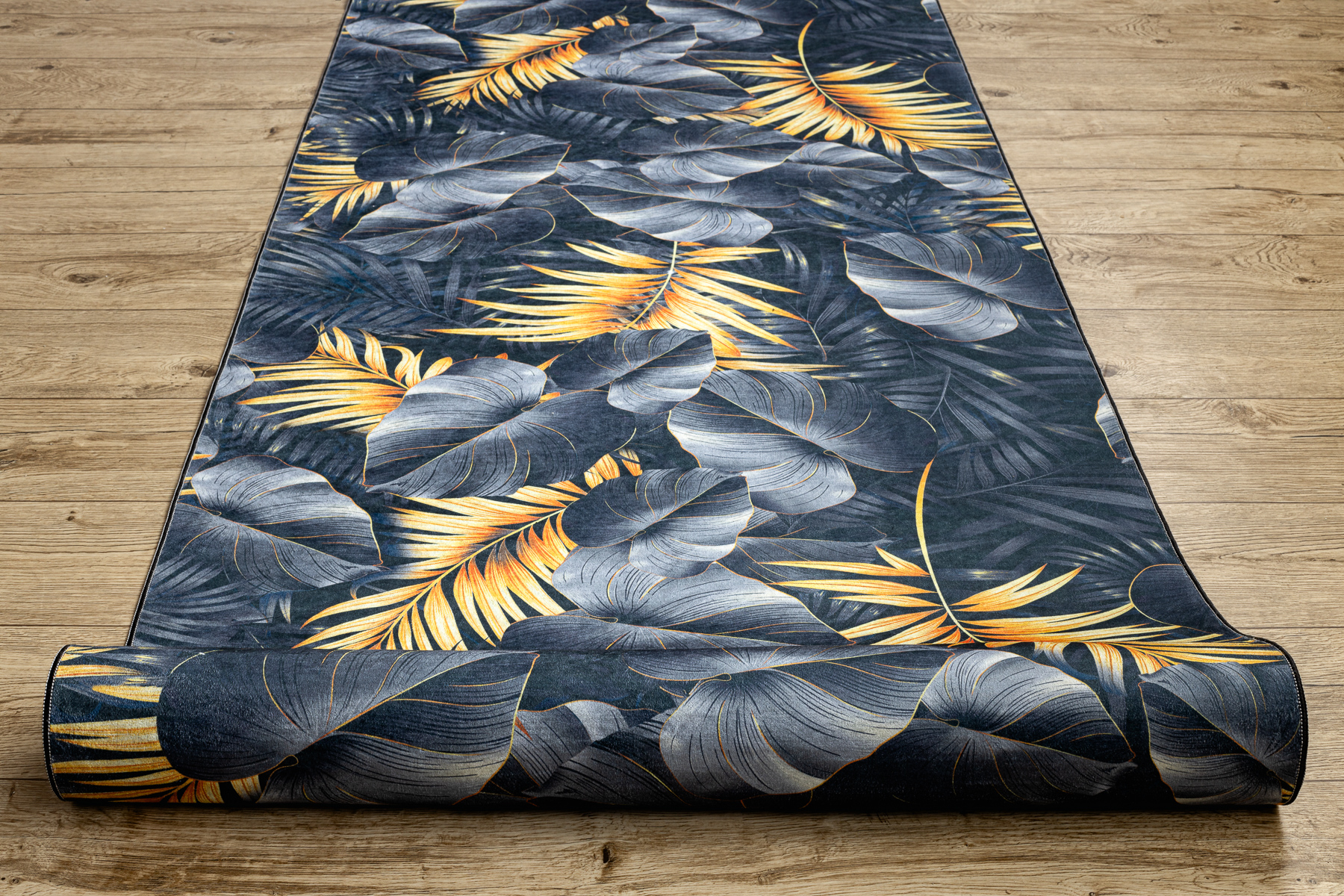 Csúszásgátló futó szőnyeg LOTUS FERNS 45270 Levelek szürke / arany mosható 100cm