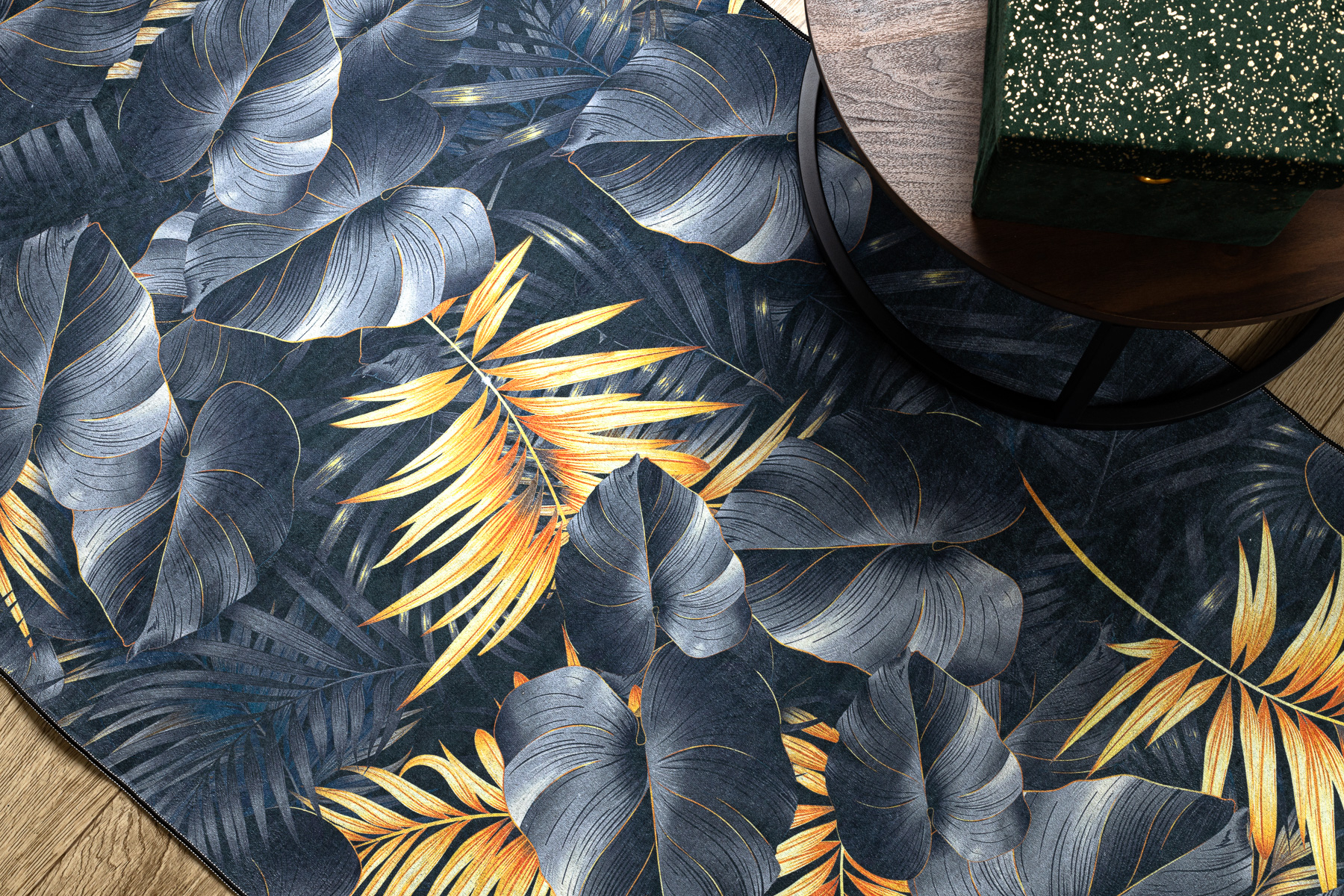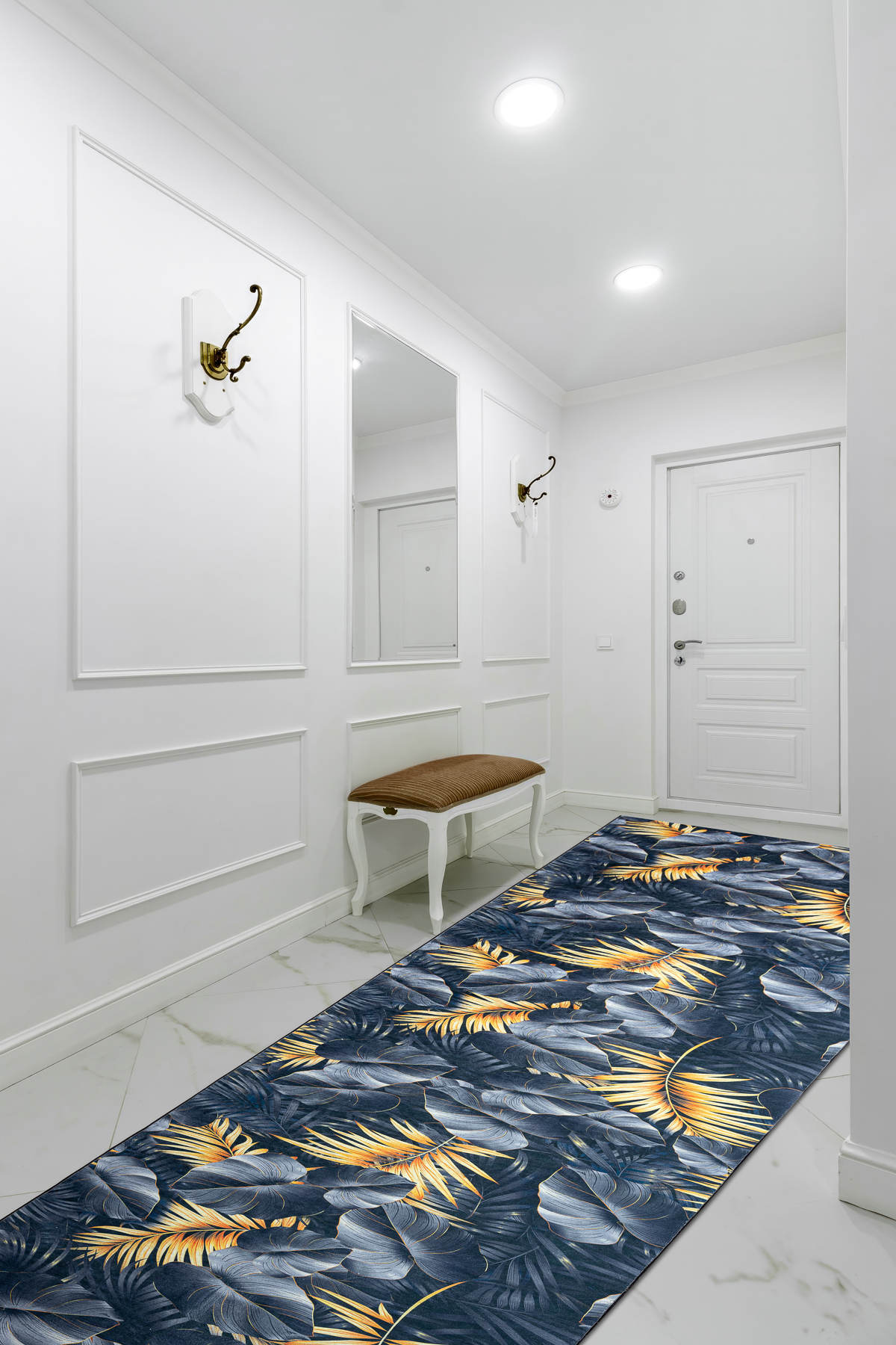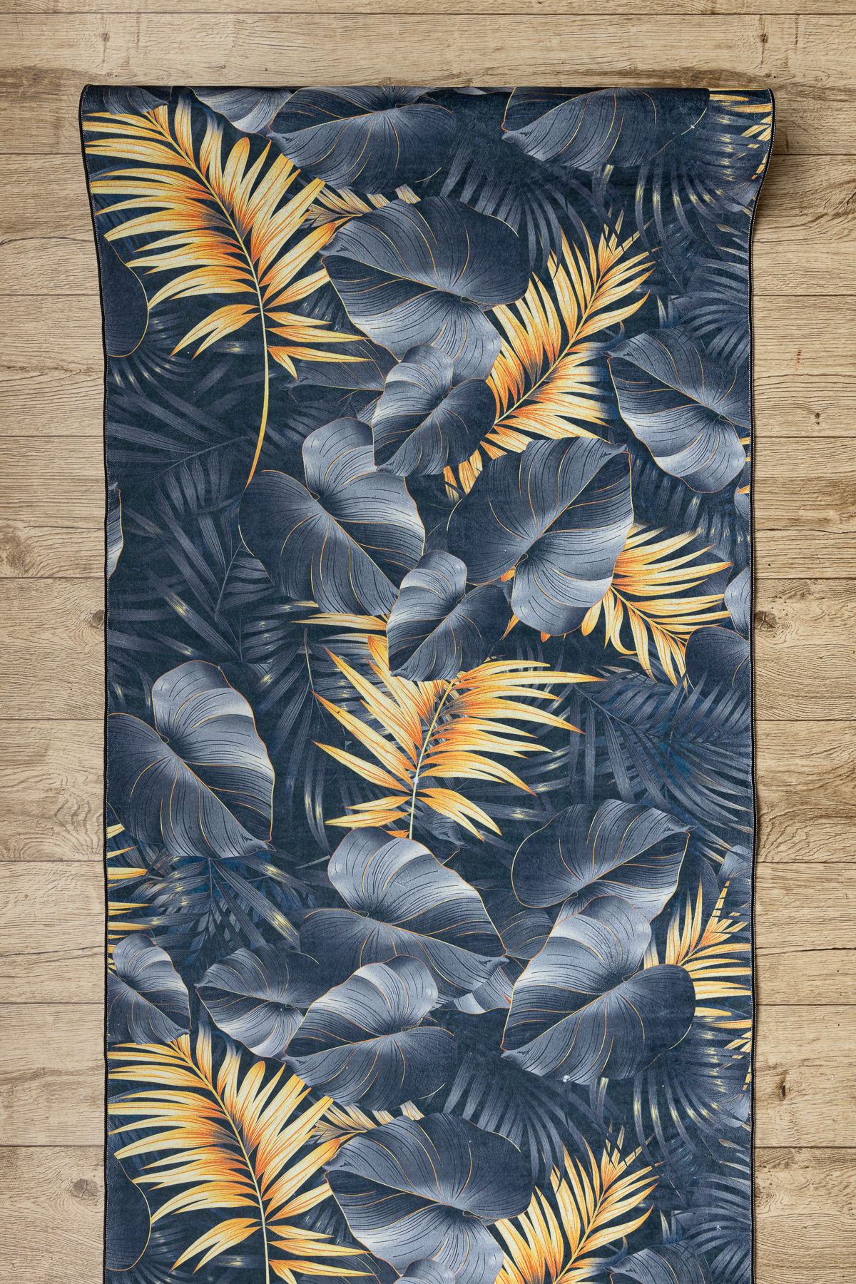 Csúszásgátló futó szőnyeg LOTUS FERNS 45270 Levelek szürke / arany mosható 100cm