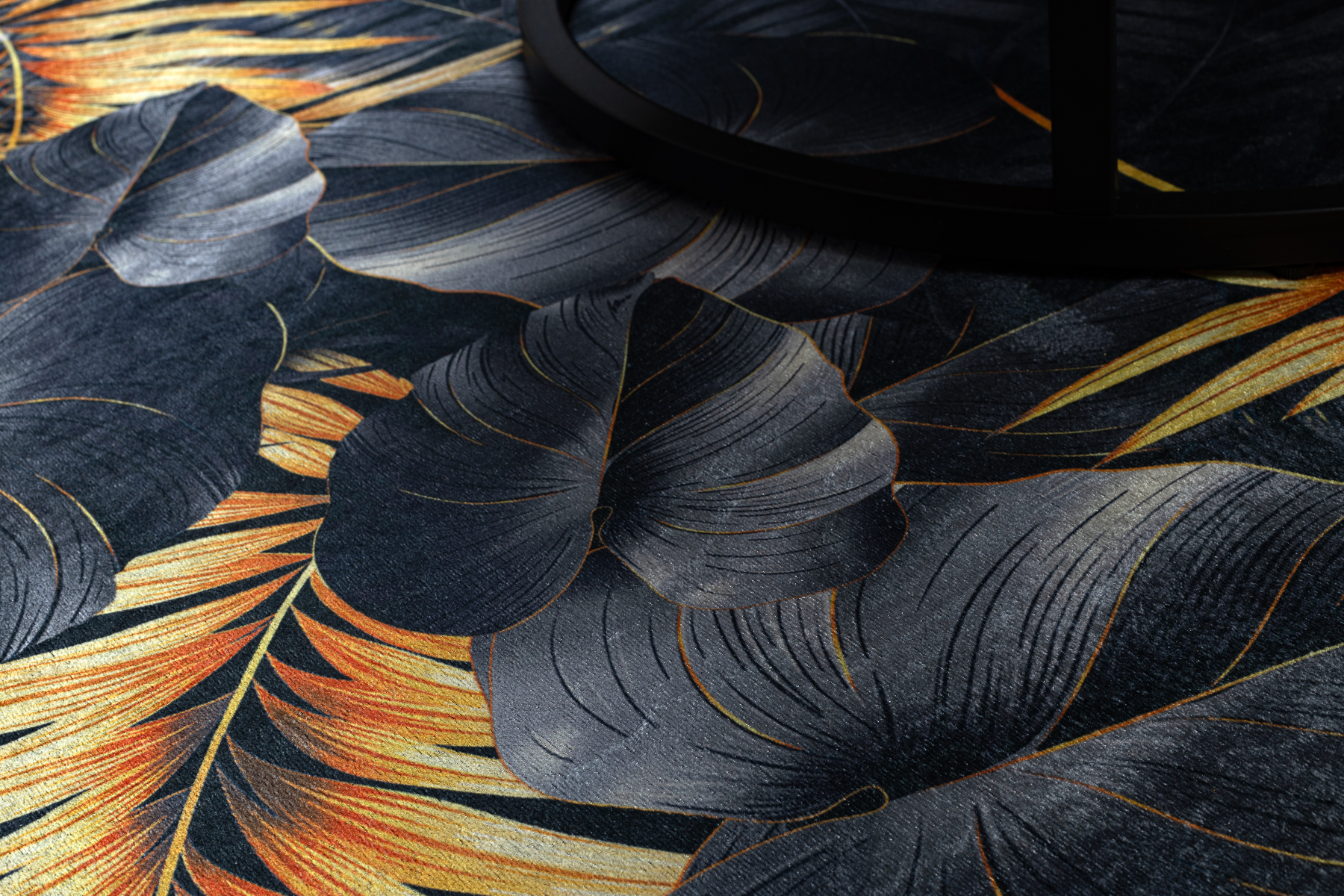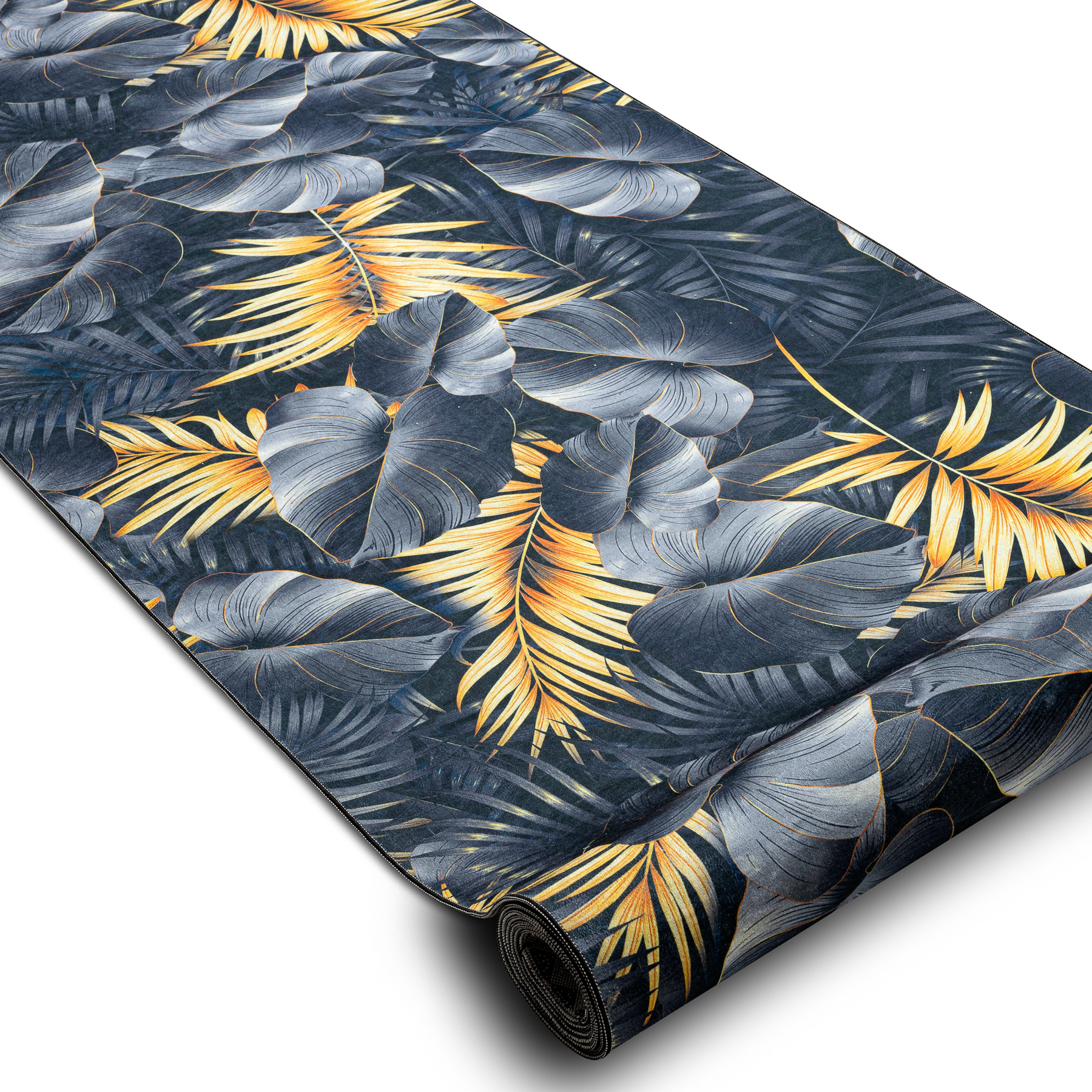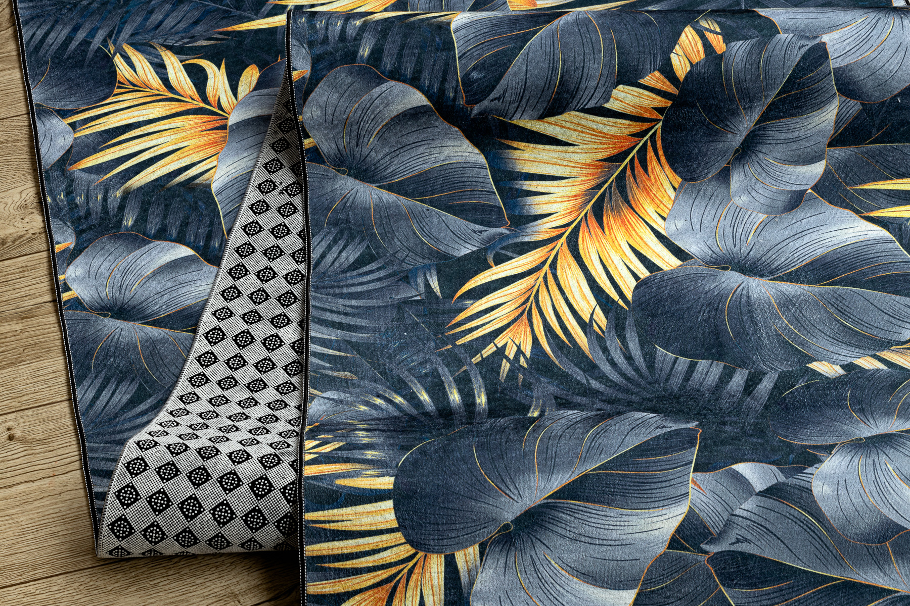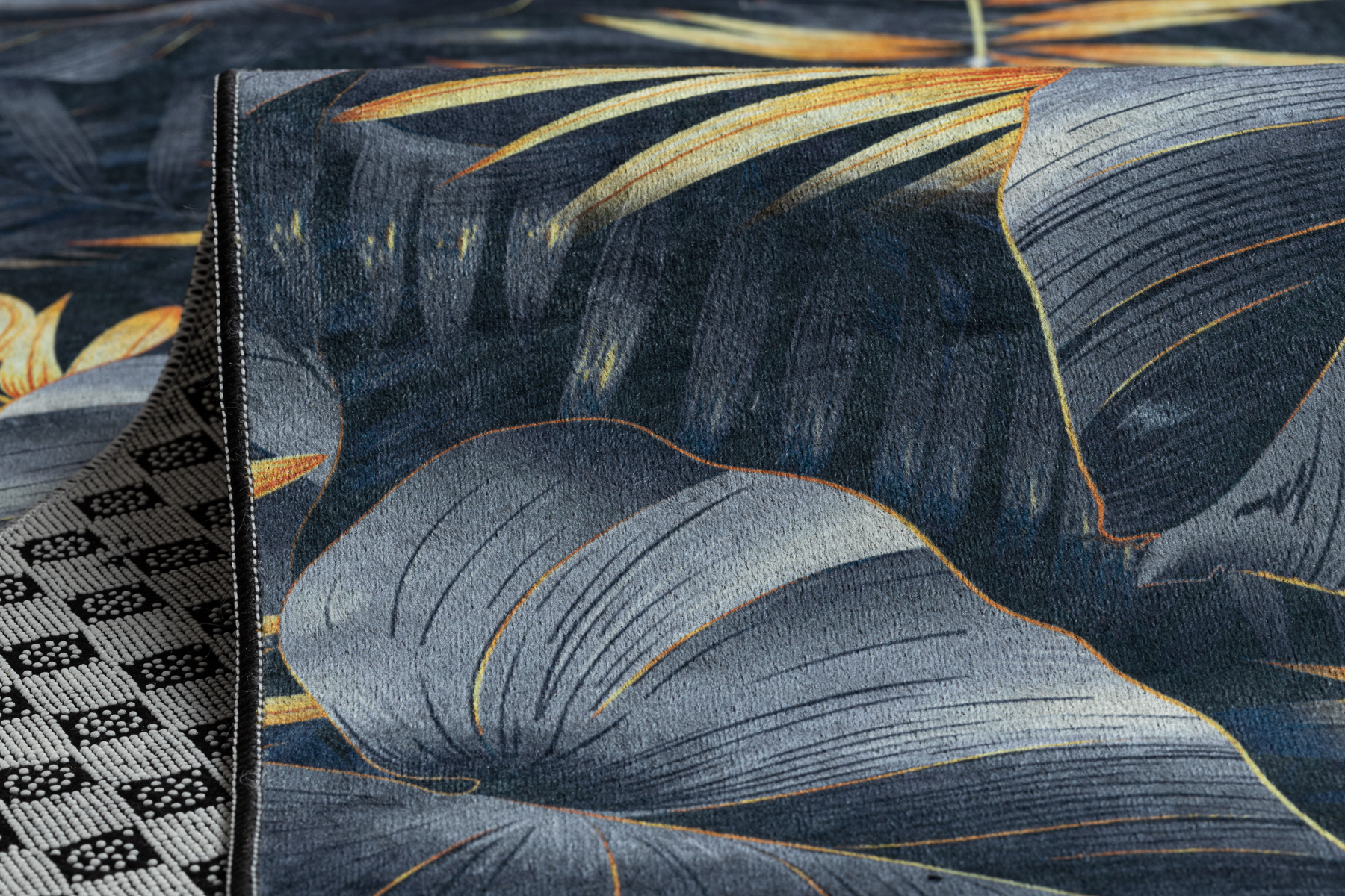 Csúszásgátló futó szőnyeg LOTUS FERNS 45270 Levelek szürke / arany mosható 100cm