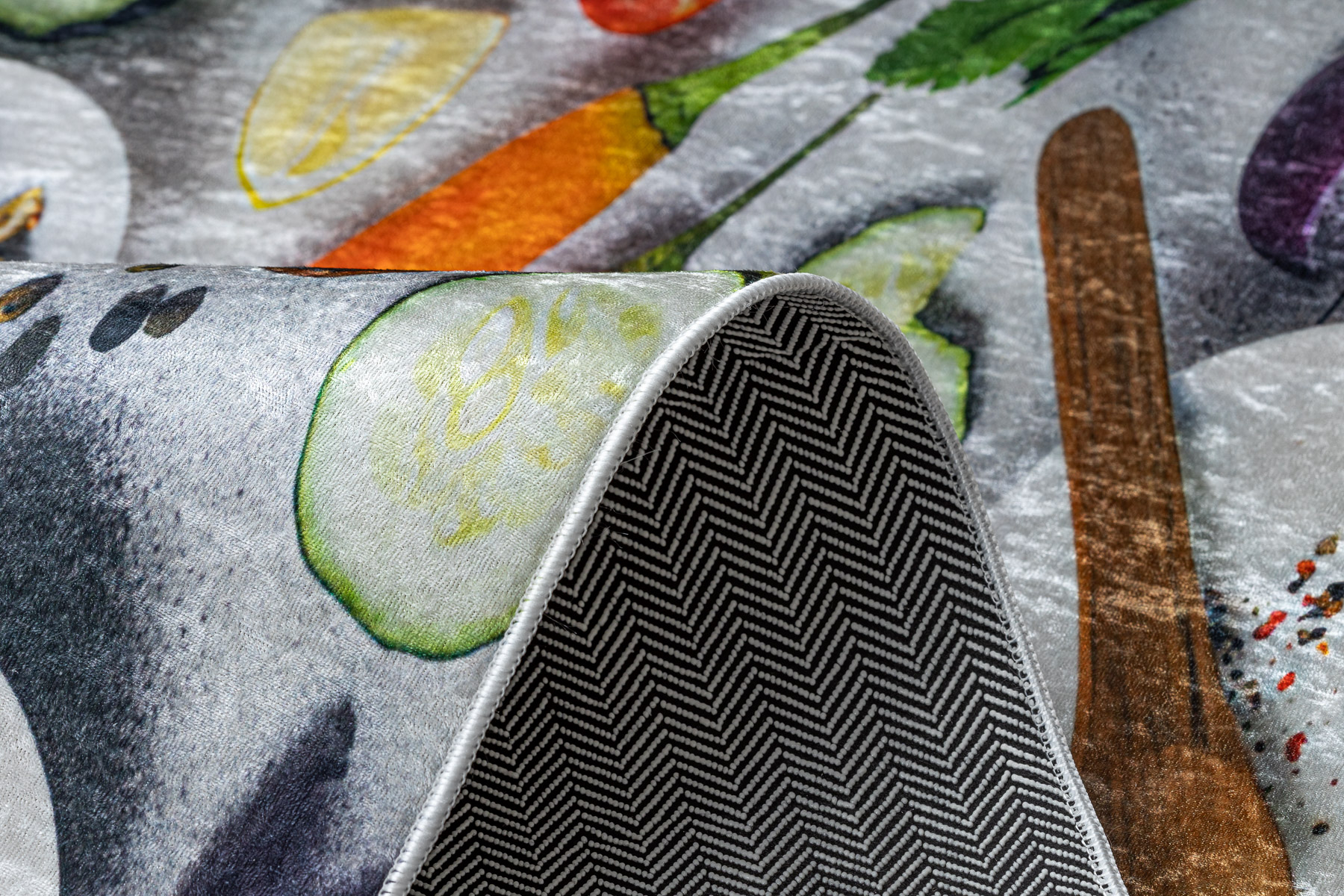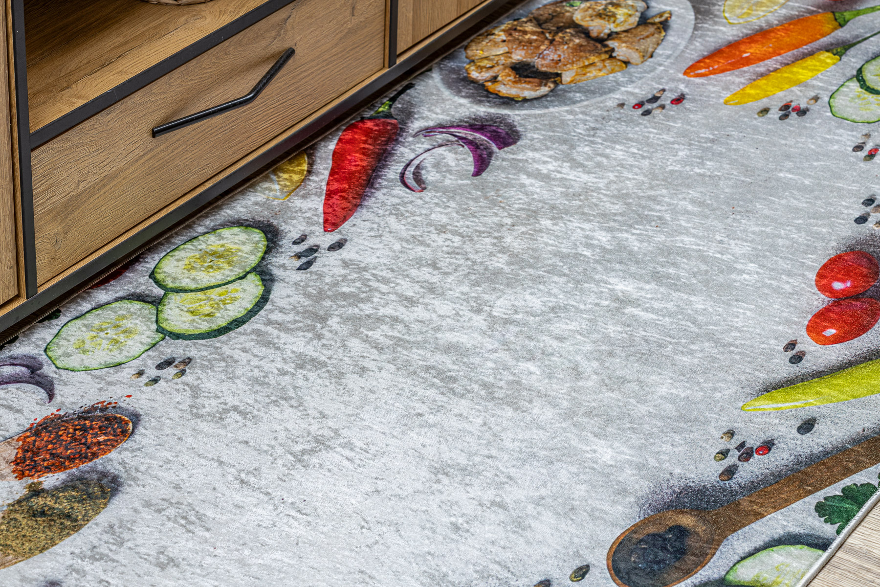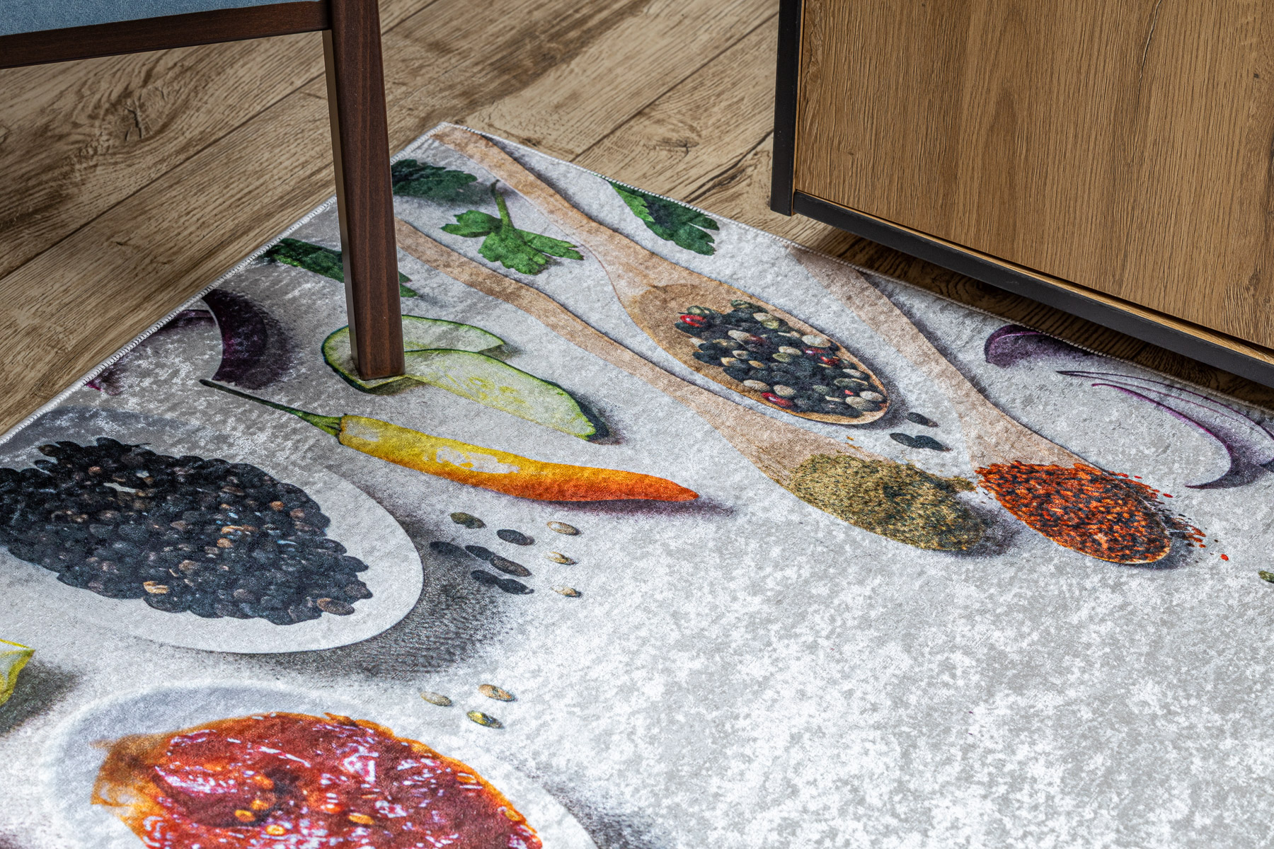 ANDRE 33580 mosható szőnyeg Fűszerek, zöldségek konyhába csúszásgátló - ezüst / zöld